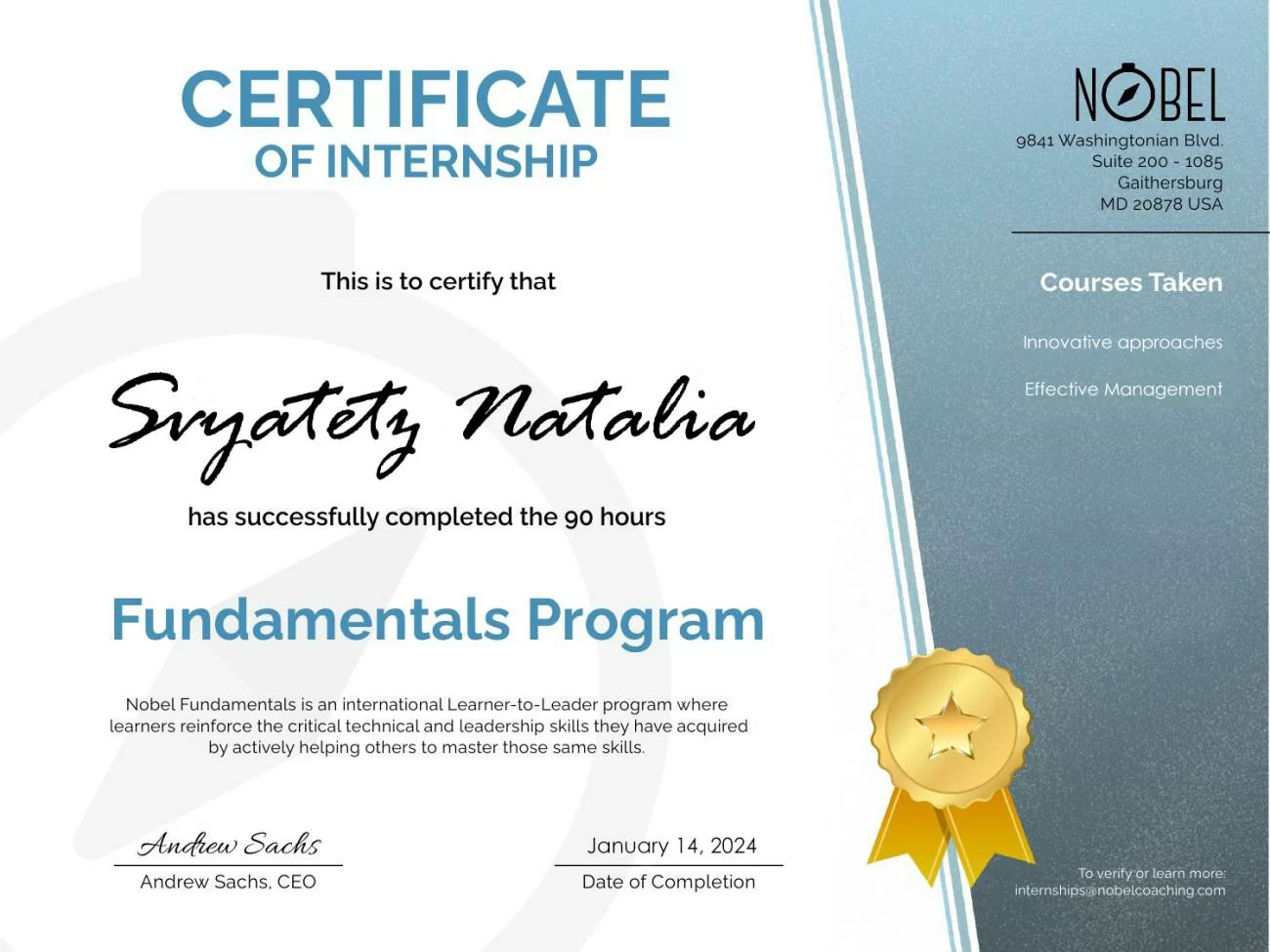 She completed a comprehensive training course in Innovative Approaches and Effective Management. She received a certificate of participation14 January 2024