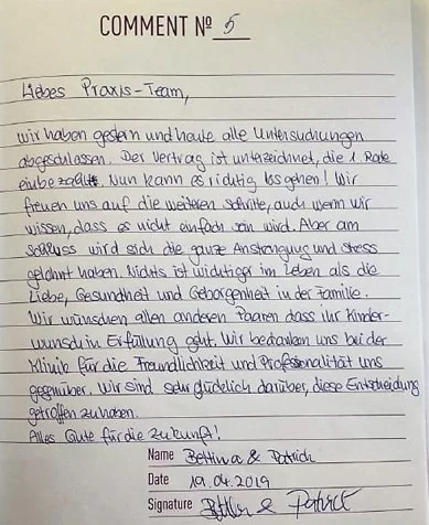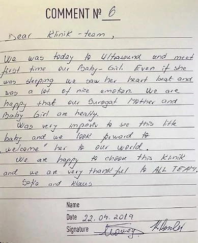 Have you been our customer? Share your experience and let other know your feelings. Help other couples overcome fears and get long-awaited child!
