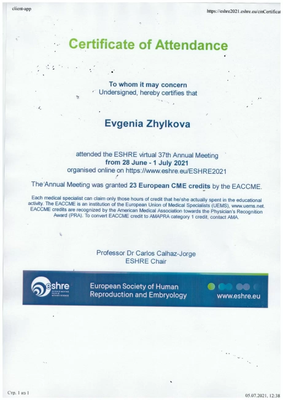 - Somova E.V. ESHRE certification of clinical embryologists in Ukraine (report) USE (Ukrainian Society of Embryologists) 2017. 7-8 April.
